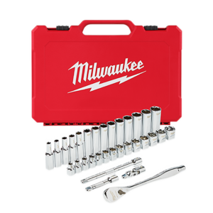 Nuestro juego de llave de trinquete y cubo con boca de 3/8? SAE de MILWAUKEE® de 32 unidades está diseñado desde cero y ofrece a nuestros usuarios los cubos más versátiles que son antirrodadura y están listos para ser usados en llaves. Sus costados FOUR FLAT cuentan con un diseño antirrodadura y listo para ser usado en llaves. La herramienta de trinquete de 90 dientes ofrece una oscilación de arco en 4° y un diseño de perfil delgado, lo que le permite trabajar en espacios más estrechos y confinados, ya sea debajo del capó de un automóvil o en medio de una remodelación. El kit de trinquete y cubos viene con una bandeja interna extraíble que tiene el diseño perfecto para almacenarse durante mucho tiempo en una caja de almacenamiento de acero. Todos nuestros cubos tienen grabadas las medidas métricas en el costado plano para una mayor visibilidad y facilidad de lectura. El juego viene con accesorios incluidos, de manera que nuestros usuarios puedan realizar cualquier trabajo, tanto en el garaje como en el lugar de trabajo. Nuestro juego de trinquete y cubos está respaldado por nuestra garantía de por vida.,INCLUYE